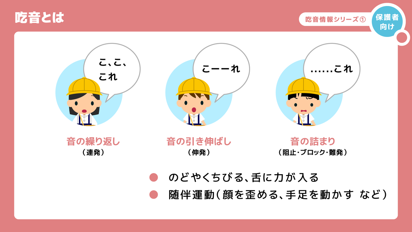 吃音の言語症状、どもる話し方には、以下の3つがあります。