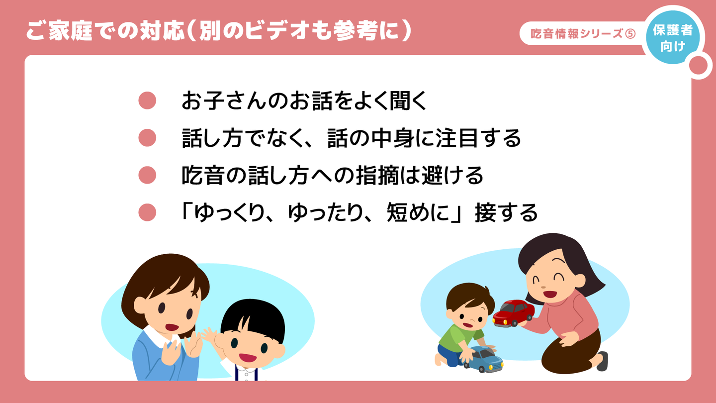 と良いでしょう。ご家庭での対応については、吃音情報シリーズ(6)「ご家庭での対応の提案」もご参照下さい。