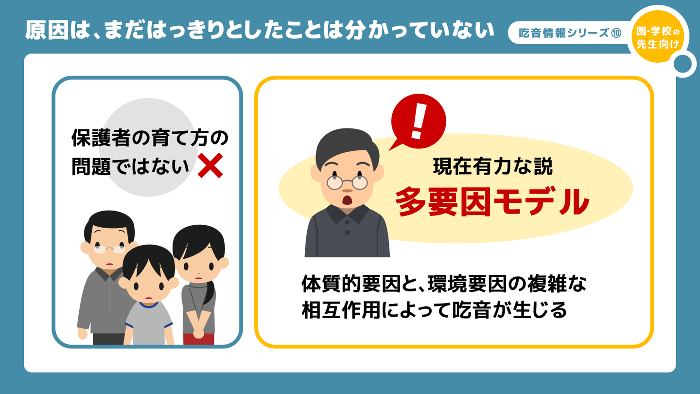 しかし、これまでの研究の結果、吃音の原因が、保護者の育て方の問題ではないことは明らかになっています。