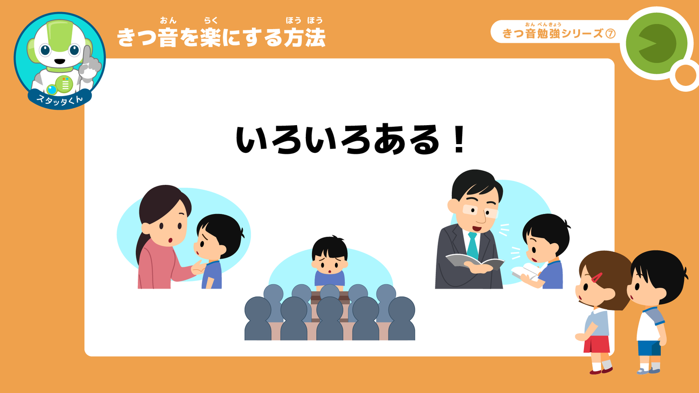 スタッタくん: そうだね。ハルトくんもすごい。もし、これらを復習したい人がいたら、吃音勉強シリーズのこれまでのビデオをもう一度見てね。