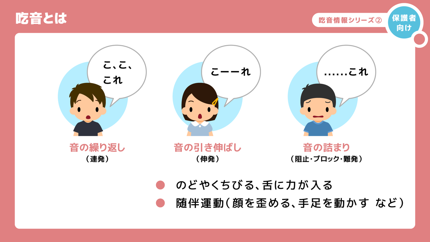 吃音の言語症状、どもる話し方には、以下の3つがあります。
