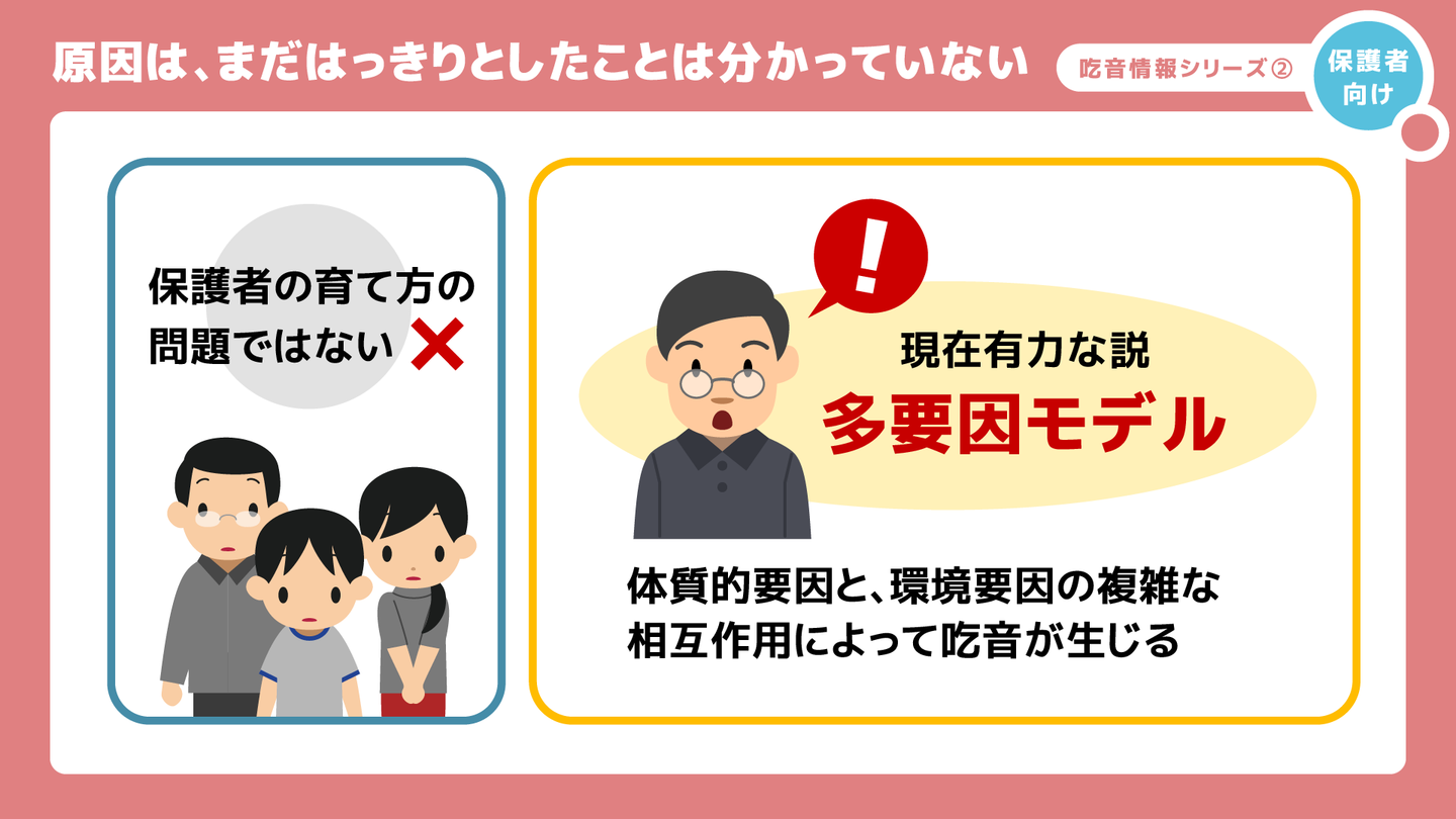 しかし、これまでの研究の結果、吃音の原因が、保護者の育て方の問題ではないことは明らかになっています。