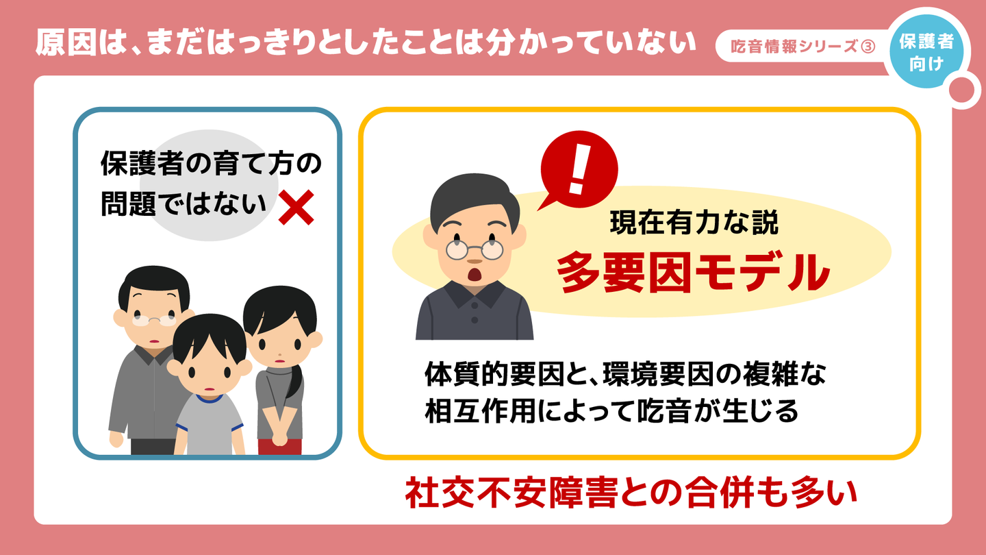 しかし、これまでの研究の結果、吃音の原因が、保護者の育て方の問題ではないことは明らかになっています。