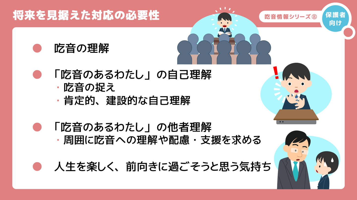 吃音のある中高生のお子さんの支援では、将来を見据えた対応が必要になります。
